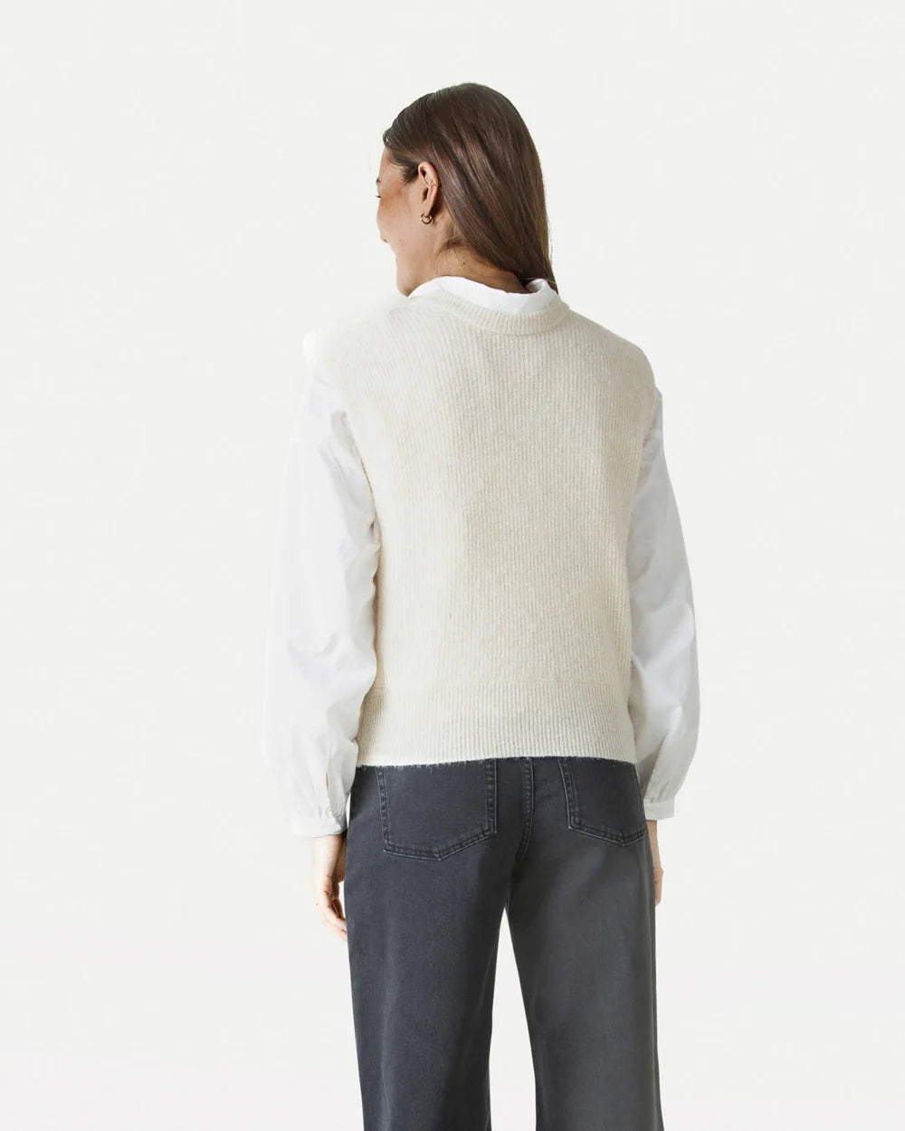 De Indra gebreide pullover is een zachte basic met een vleugje structuur. Hij heeft een relaxte pasvorm, subtiele schoudervulling en een klassieke geribbelde ronde hals voor een strakke, moderne vorm. Draagt moeiteloos en heeft precies de juiste hoeveelheid pit. Stijltip: Combineer met een wijde broek of denim voor een strakke, alledaagse look.
