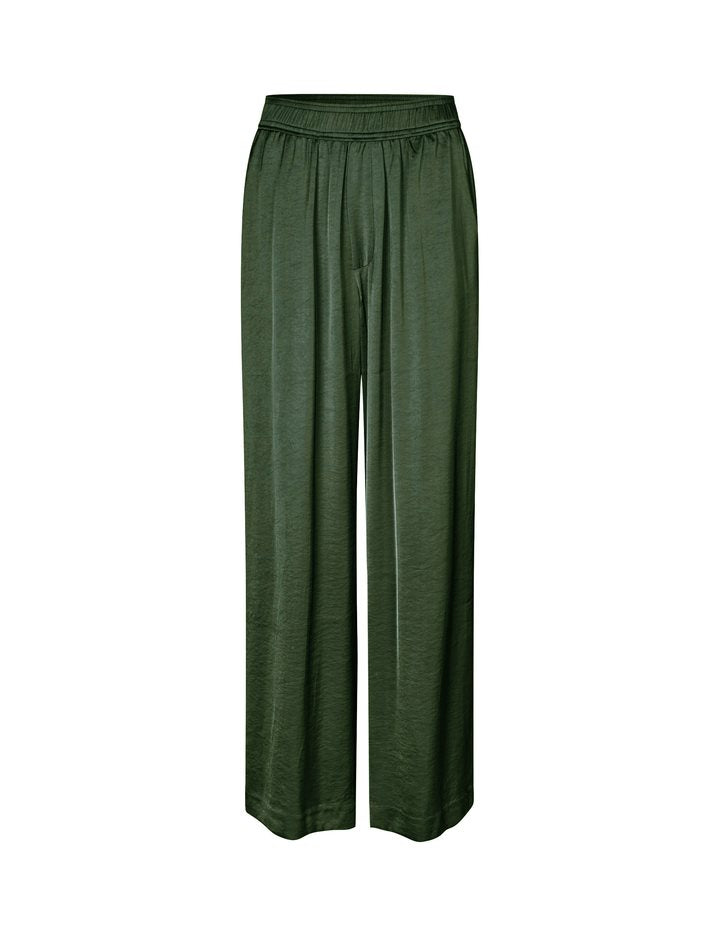 Wijde satijnen broek met zijzakken. - Materiaal: 98% Polyester, 2% Elastaan - Wijde pijpen - Zijzakken - Elastische taille - Satijn kwaliteit