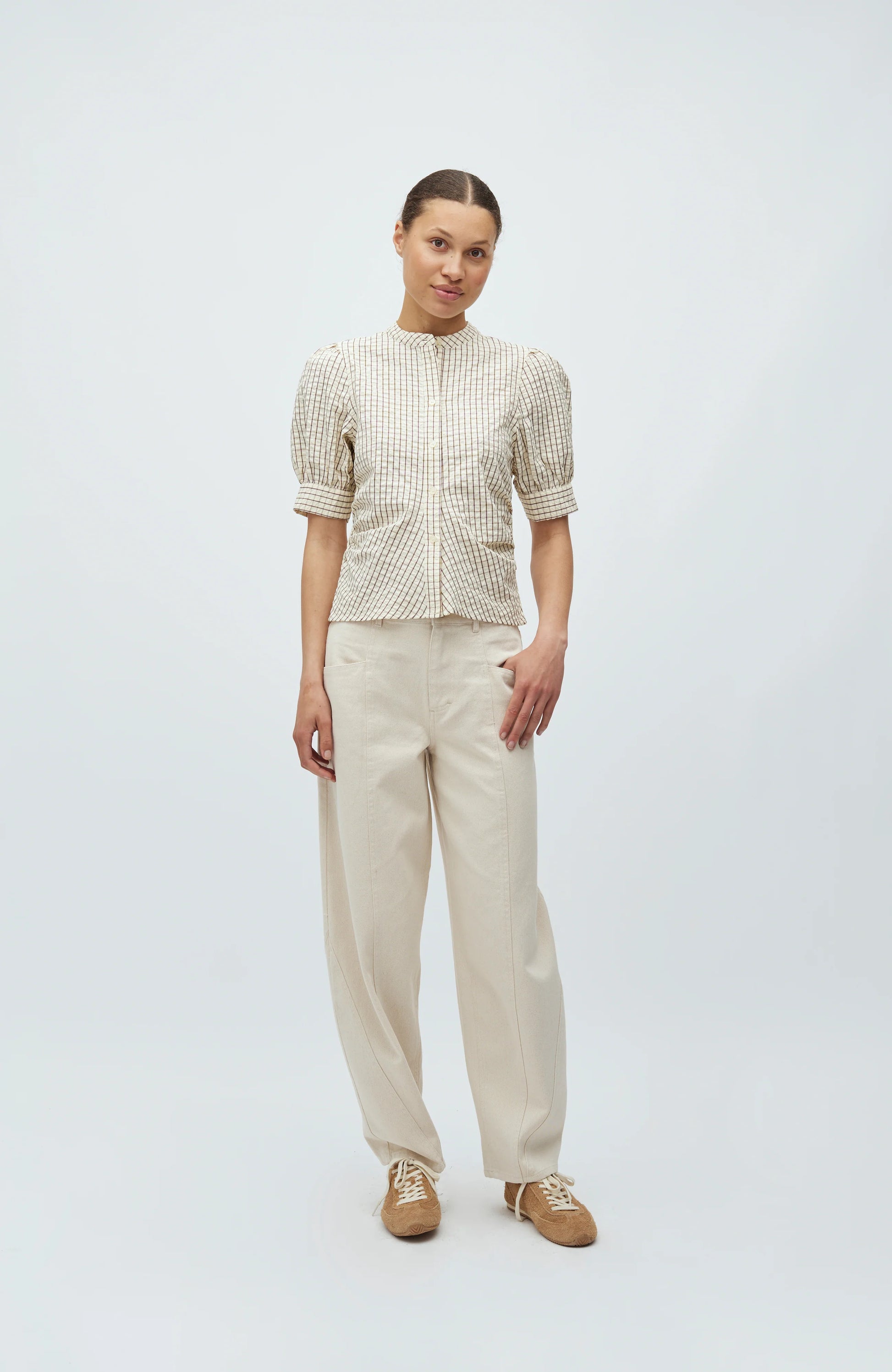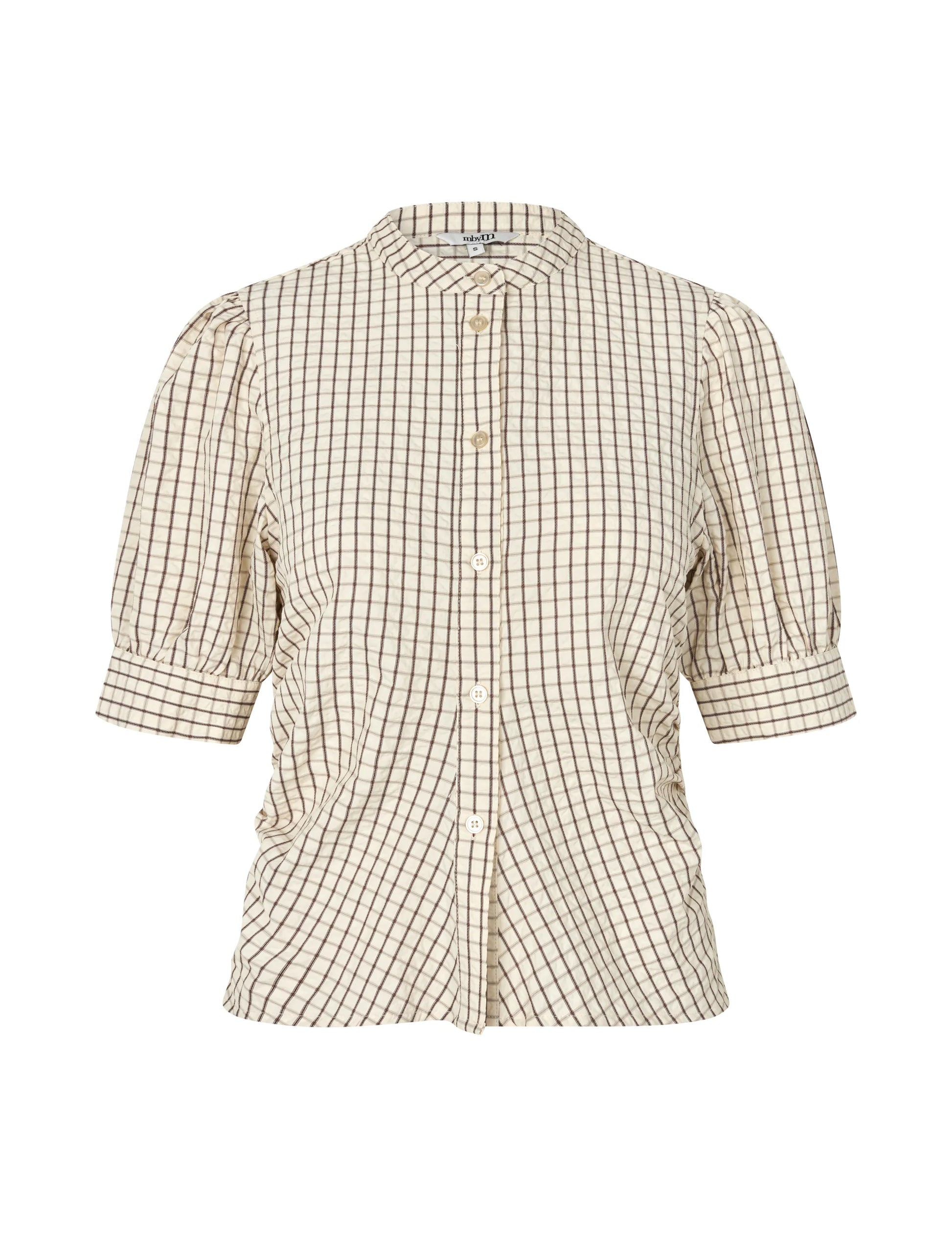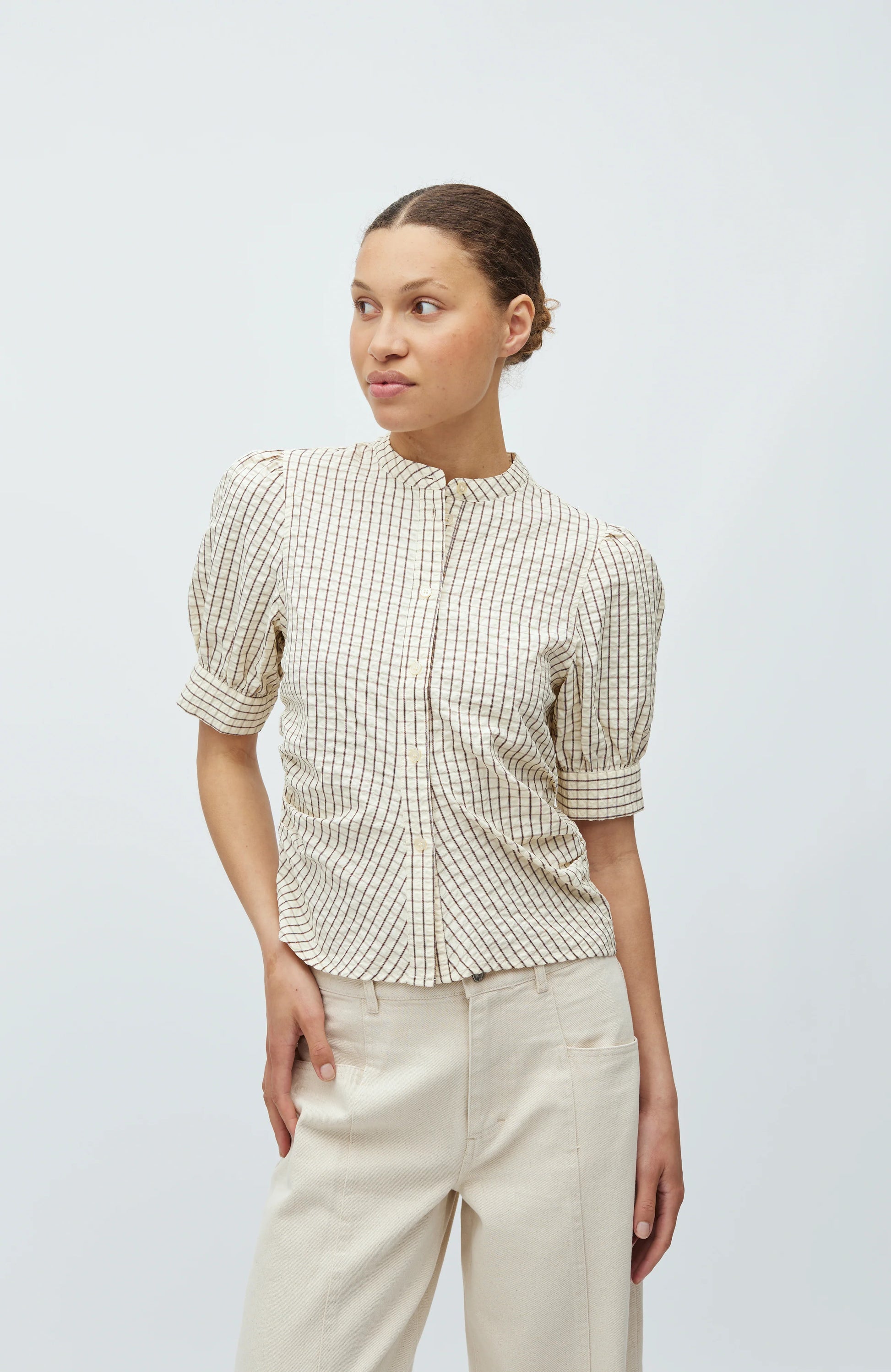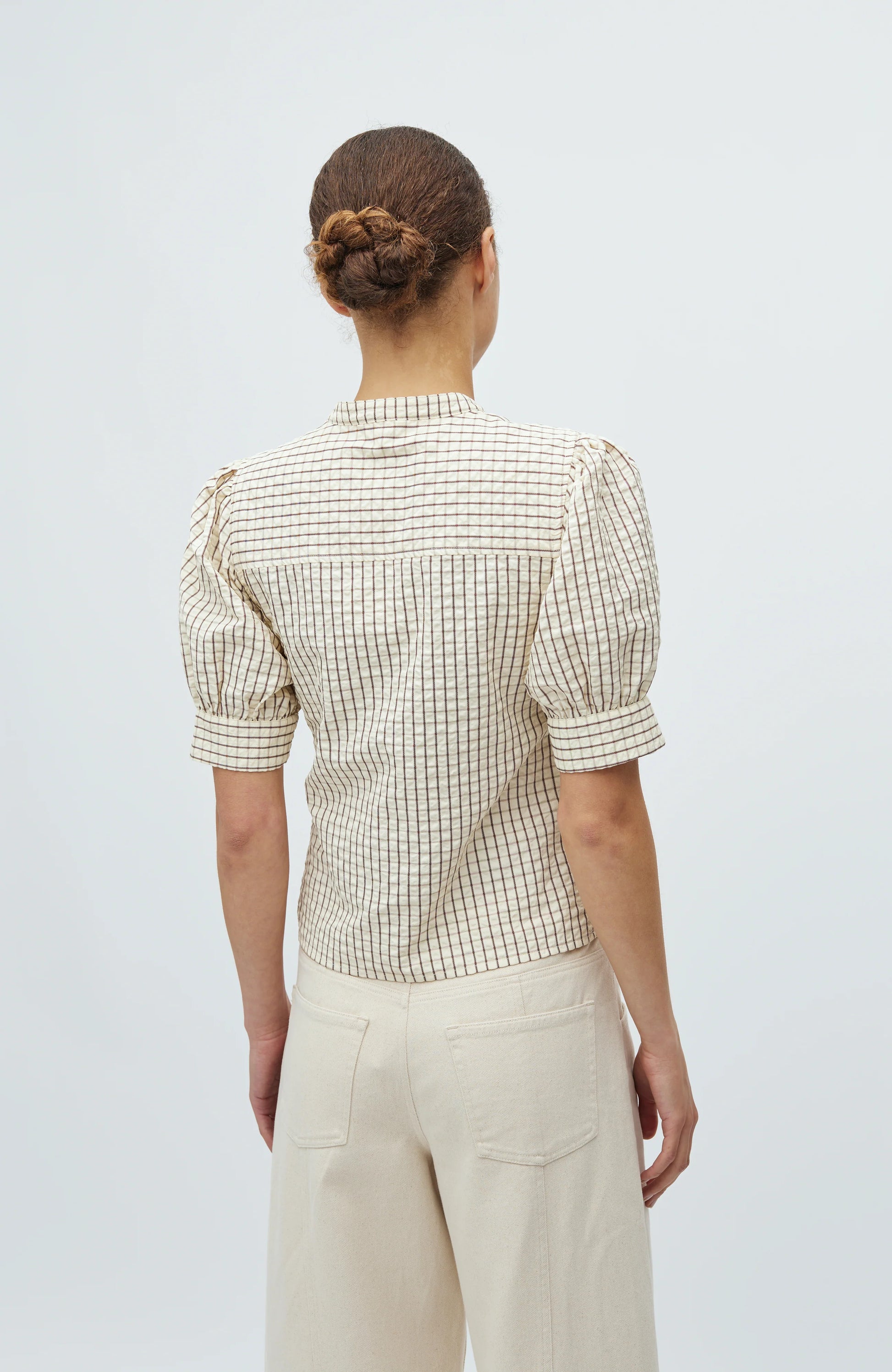 Blouse met korte mouwen en pofmouwen.