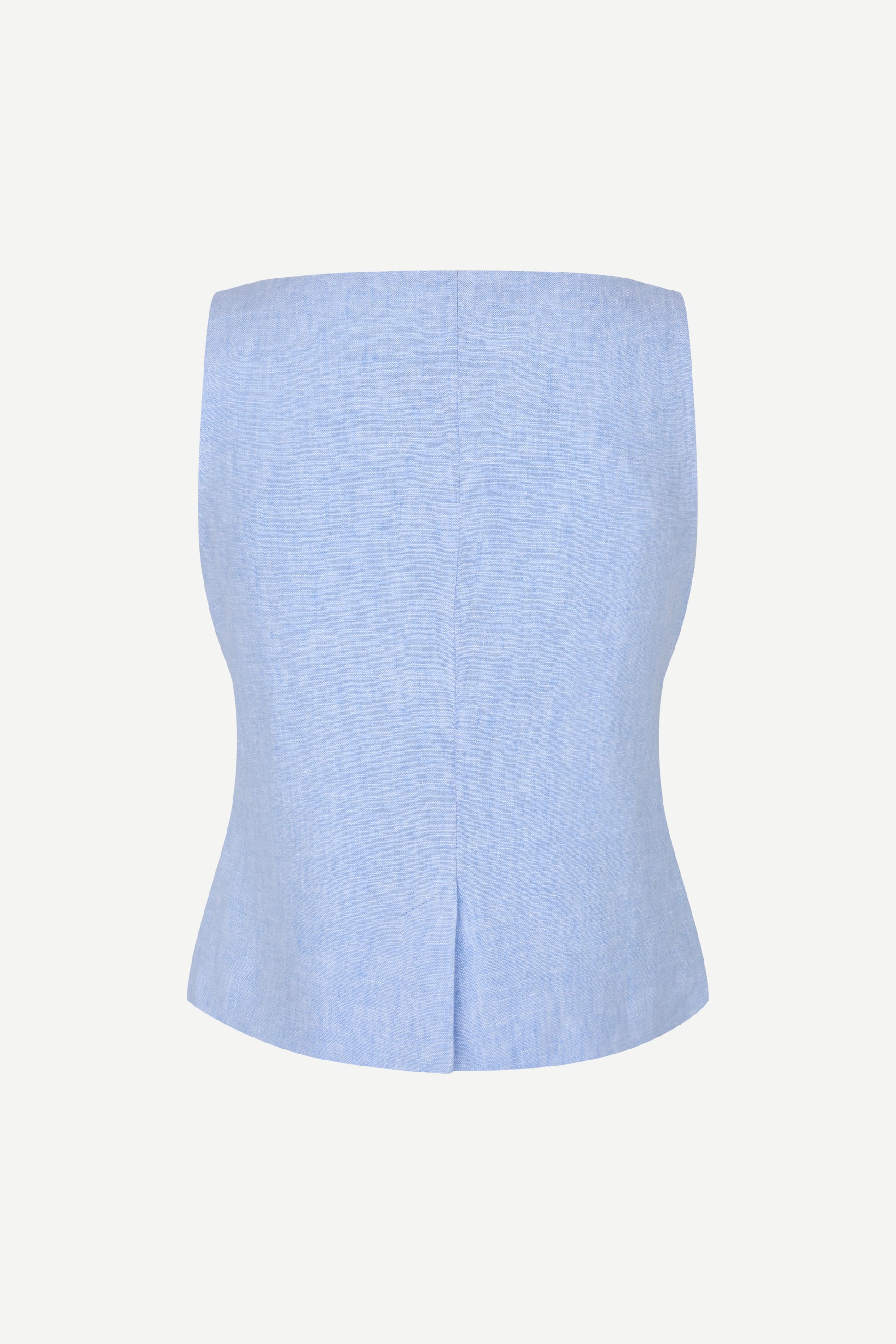 Mouwloos geweven vest met een normale pasvorm. Knoopsluiting aan de voorkant. Steekzakken aan de voorkant. Ronde hals. Voering van 100% katoen. Buitenstof van 100% linnen.