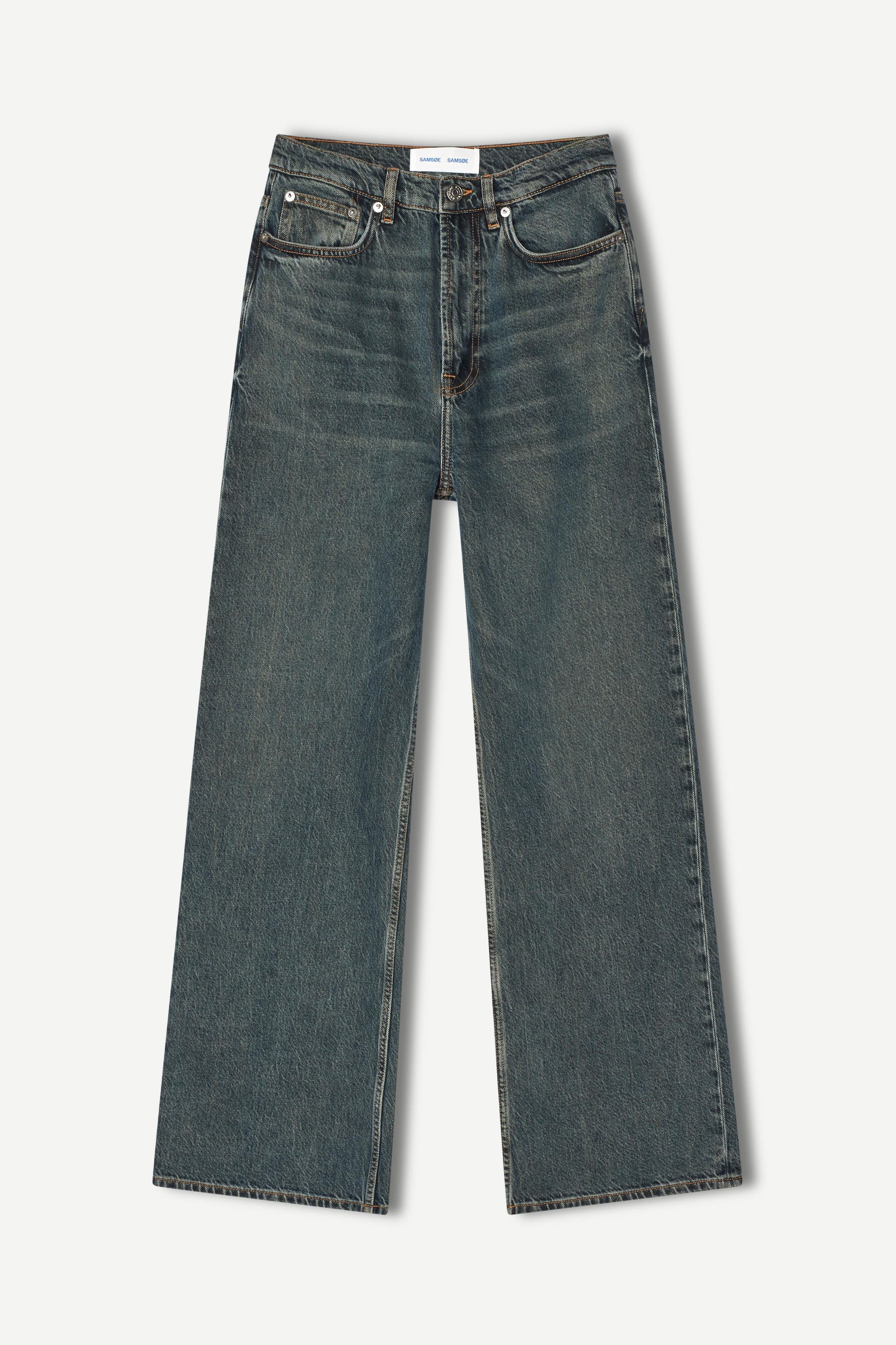 Jeans met hoge taille en een normale pasvorm en wijde pijpen. Knoop- en ritssluiting aan de gulp. Five-pocket stijl. Riem lussen. Hoofdmateriaal gemaakt van 100% biologisch katoen.