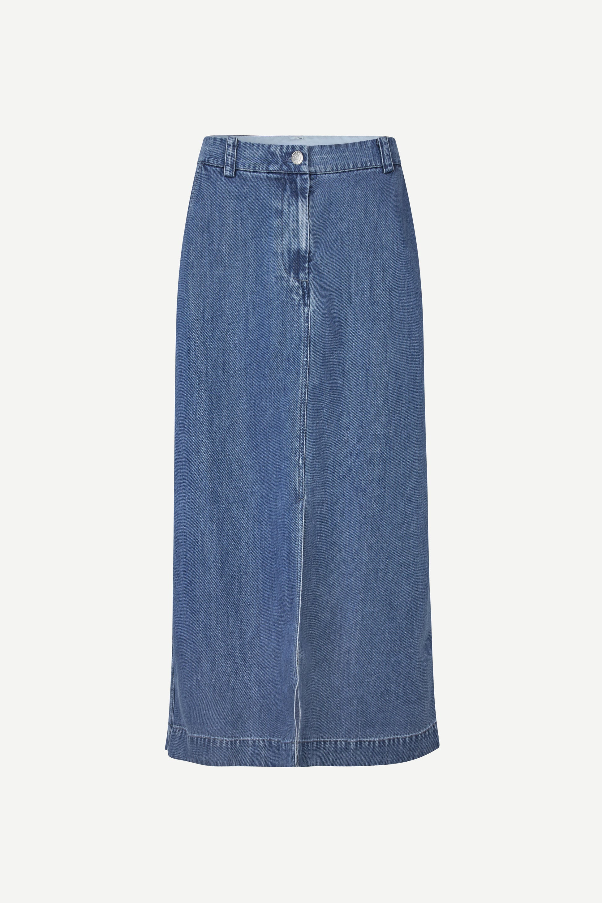 Midi-rok van denim met een rechte pasvorm. Knoop- en ritssluiting aan de voorkant. Geen zakken. Hoofdmateriaal: 100% TENCEL™ Lyocell.